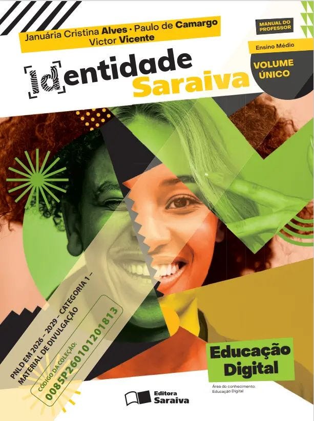 Esse é uma contribuição de um trio que eu adoro: Victor Vicente, Paulo de Camargo e Januária Cristina Alves. Uma obra que acompanha a revolução digital. Fala do uso de tecnologias para avanços sociais e científicos. Da relação entre o pensamento computacional e o pensamento matemático. De privacidade, autonomia. De curadoria. Dá dicas para fugirmos dos golpes de internet. Abre a cabeça sobre nossos direitos e deveres no ambiente digital. Fala de cidadania. Justiça Social. Diversidade.